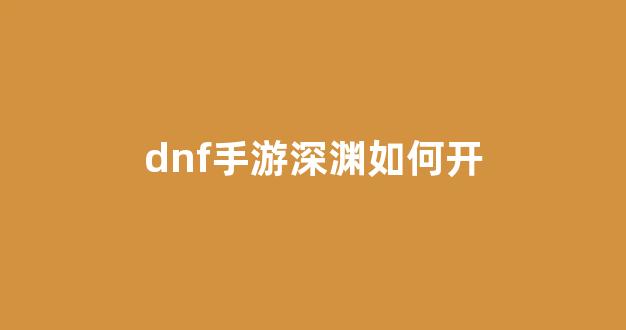 概述:DNF手游深渊开通方式